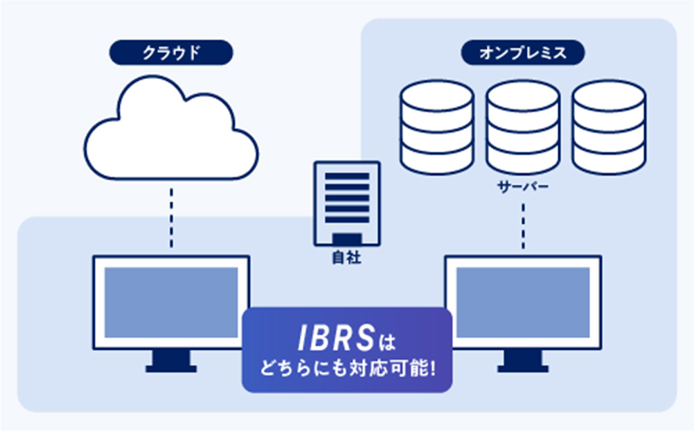 IBRSは自社サーバー型での運用にも対応します。AWS等パブリッククラウド型での運用実績もあります。